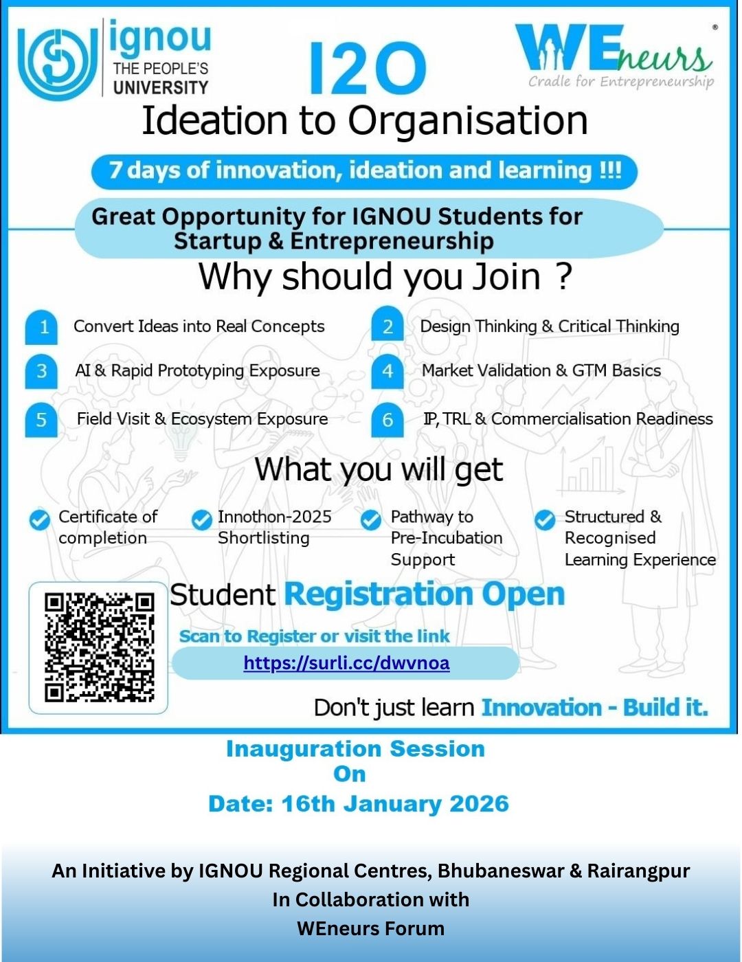 Startup and Entrepreneurship Workshop organised by IGNOU RC Bhubaneswar & Rairangpur.